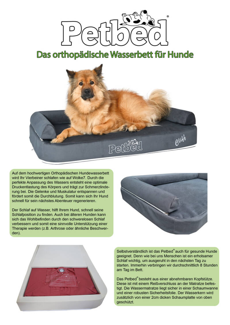 Egal ob klein oder groß, jung oder alt – unsere Hundewasserbetten sind für alle Hunde geeignet. Die anpassungsfähige Oberfläche bietet jedem Hund den optimalen Komfort.